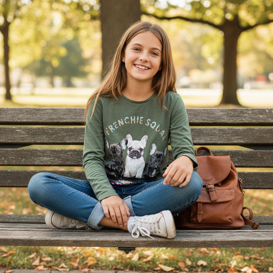 T-shirt Manches Longues Kaki Fille 14 ans C&A - Imprimé Chiots et Strass Multicolores