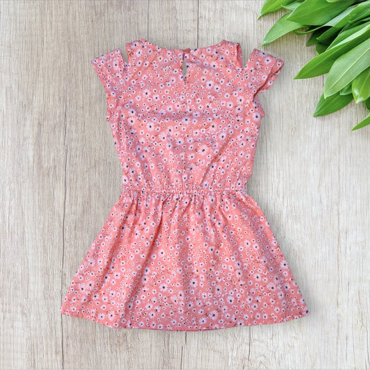 Robe fille 4 ans – Districenter – Rose corail à fleurs, épaules ajourées