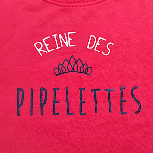 Pull fille 6 ans Districenter–Rouge– « Reine des pipelettes »