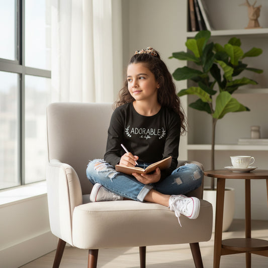 T-shirt Fille Manches Longues Noir "Adorable et Stylée", Taille 138-140 cm (10Ans)- Collection Éco Conception Kiabi