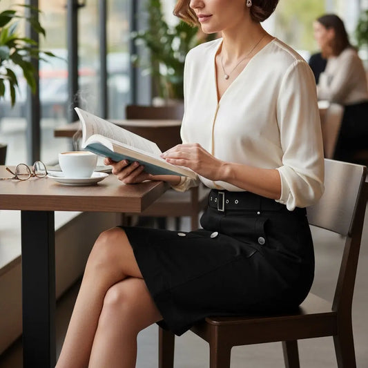 Jupe femme effet huilé bleu marine taille S – Détails métalliques élégants
