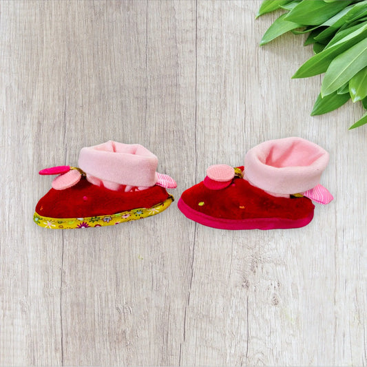 Chaussons Naissance Lilliputiens - Rouge à Pois Multicolores et Chaussette Intégrée