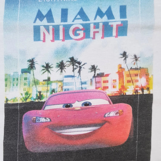 T-shirt garçon 5 ans – Blanc & Bleu marine – Imprimé Cars – Très bon état