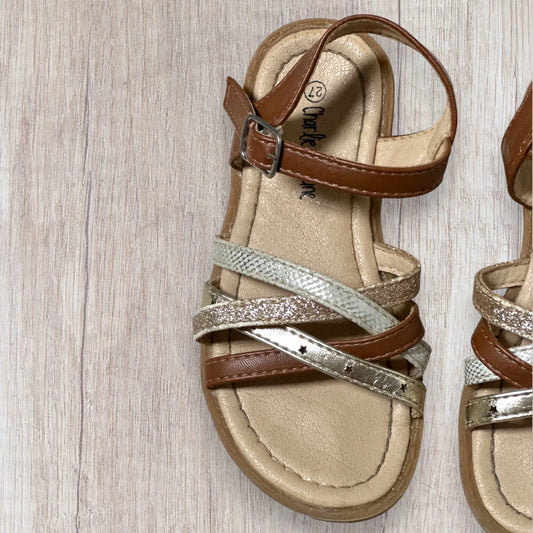 Sandales fille taille 27 – Charlie & Prune | Multibandes marron & doré