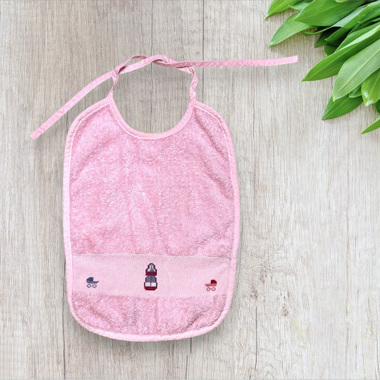 Lot 2 bavoirs bébé fille faits main–Broderies ourson & biberon–Sans marque