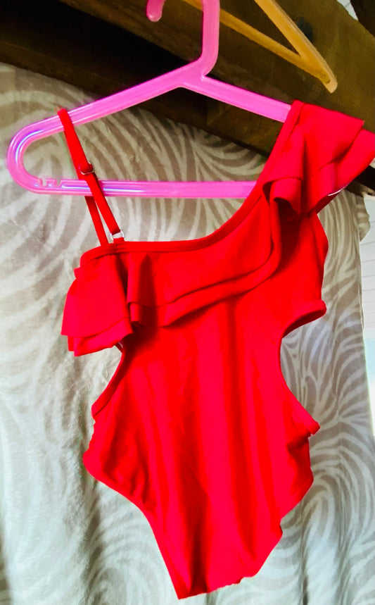 Maillot de Bain Fille Asymétrique Rouge - 7 Ans - Shein