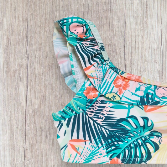 Maillot de bain 2 pièces fille Orchestra - 5 ans | Motif tropical blanc turquoise corail