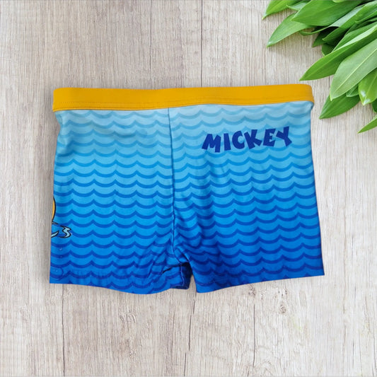 Maillot de bain garçon Disney Mickey–2 ans | Caleçon bleu dégradé, vagues et motif plongée