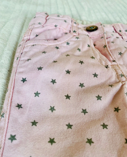 Pantalon en Jean Rose à Motifs Étoiles Grises - Bébé Fille Taille 3 Mois - Districenter