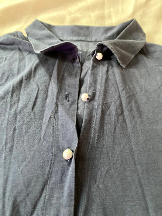 Blouse femme Gérard Pasquier 42 bleu marine à motif fleuri blanc – manches longues bouffantes