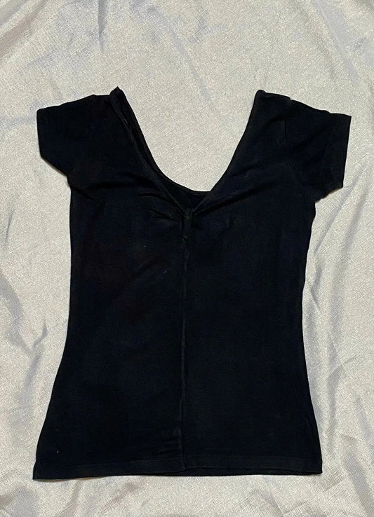 Haut Cache-Cœur Noir Uni - Taille Unique - Manches Longues et Noué sur le Côté