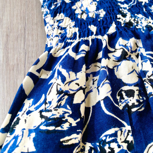 Haut Asymétrique à Volants - Taille L - Imprimé Fleuri Turquoise