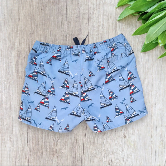 Short de bain garçon La Halle – 3/4 ans | Bleu clair motif bateaux rouges