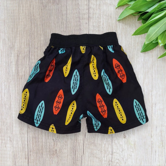 Short de bain garçon – 3 ans | Noir motif surf coloré