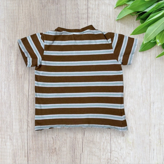 T-shirt Lacoste garçon 5 ans – manches courtes – rayé marron, blanc et bleu ciel