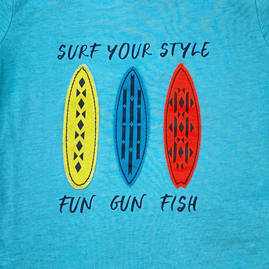 T-shirt garçon–3 ans–Turquoise avec broderie surfs–Très bon état–Sans marque