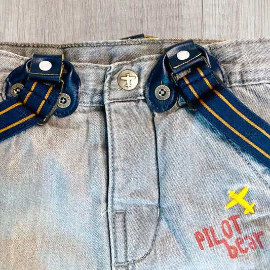 Pantalon Bébé Garçon 6Mois - Jean Gris Doublé Polaire avec Bretelles - Orchestra