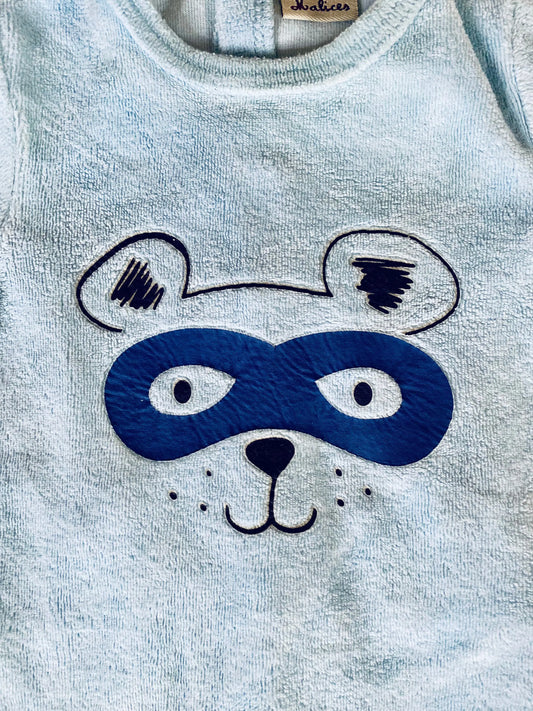 Pyjama Bébé Garçon 3 Mois - Polaire Bleu Clair avec Dessin Ours Masqué - La Boîte à Malice