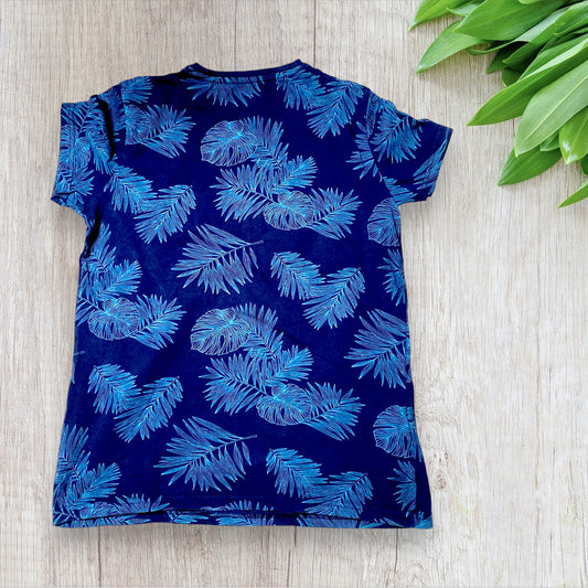 T-shirt Ado Garçon Bleu Foncé avec Imprimé Feuilles Tropicales, Taille 14 Ans (155-167 cm) - Marque In Extenso, Auchan