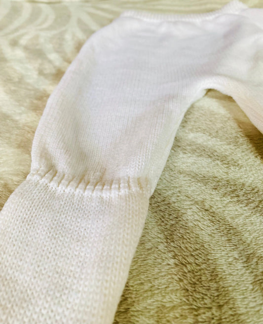 Pantalon Mixte en Maille Tricotée avec Pieds Chaussettes Blanc - Taille 1 Mois