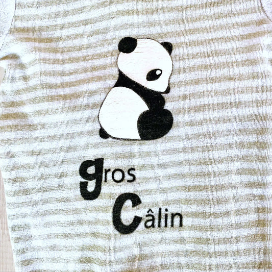 Pyjama Bébé Mixte en Polaire - Blanc à Rayures Grises avec Panda - 3 Mois - Manon et Valentin