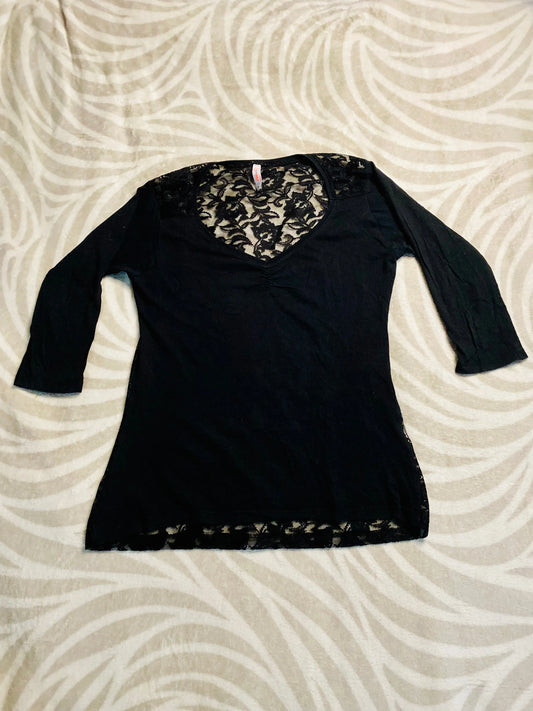 T-shirt Femme Noir Col V avec Dentelle - Taille M - FBsister