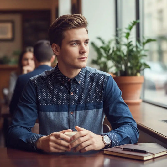Chemise homme bi-matière Wish – Taille S – Bleu marine & bleu jean – Velours + jean