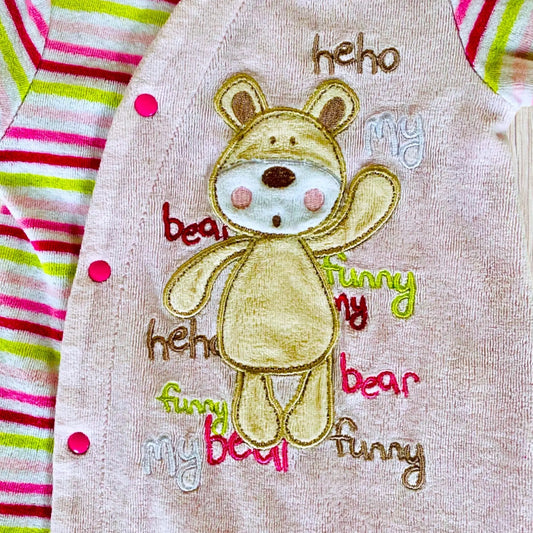 Pyjama Bébé Fille 1 Mois - Rose Clair avec Ours et Écriture Colorée - Polaire Douce