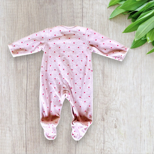 Pyjama Fille 1 Mois (56 cm) - Long Rose avec Motifs Cœur Rose Clair - Auchan