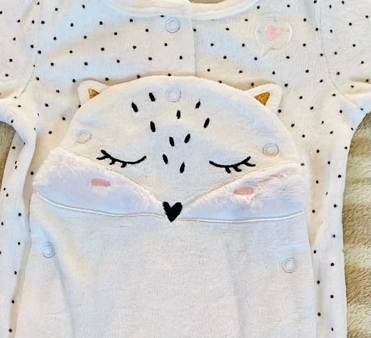 Pyjama Fille Polaire Blanc à Pois Noirs avec Broderie Renard - 1 Mois - Gémo