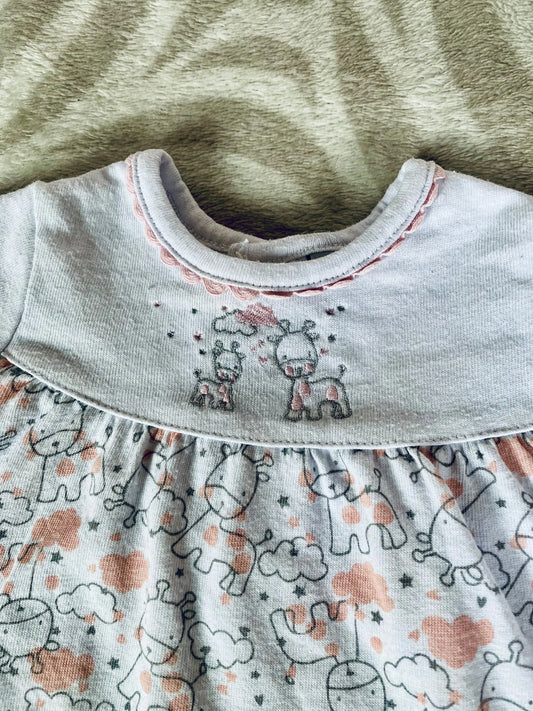 Robe Bébé Fille Blanche avec Broderies de Girafes - Col Claudine - 1 Mois