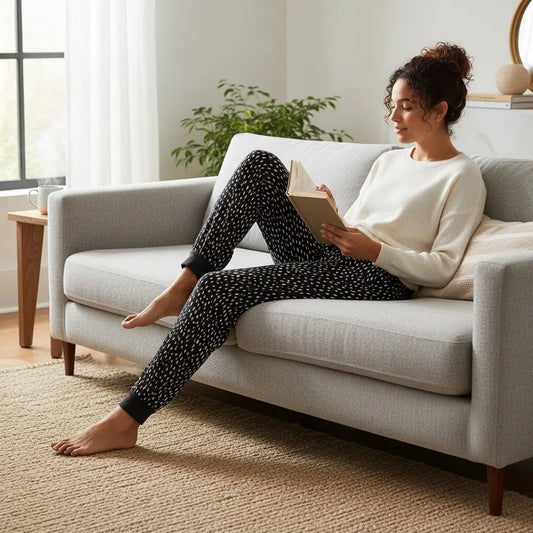 Bas de pyjama femme 9th Avenue L gris à pois – Taille ajustable et resserré aux chevilles