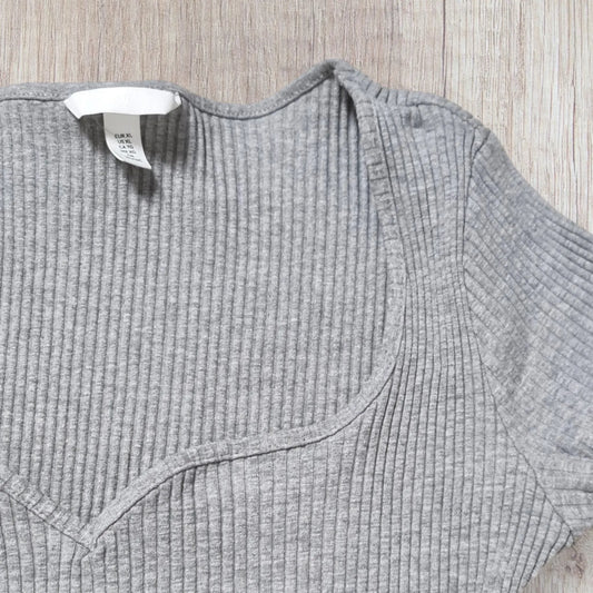 Body femme H&M XL – Noir ou gris rainuré | Col bateau cœur & manches courtes
